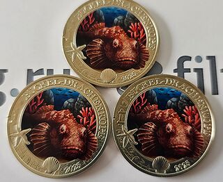 Новая монета 2025 года из австрийской серии «Светящаяся морская жизнь»! Скорпенопс-дьявол — рыба из семейства скорпеновых. Это один из 180 видов рыб, обладающих биофлуоресценцией. Скорпенопс-дьявол может светиться насыщенным красным светом, что отражено в дизайне монеты номиналом 3 евро.