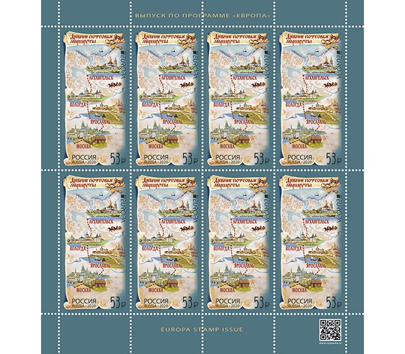 Лист с марками «Выпуск по программе «Европа». Древние почтовые маршруты» 2020