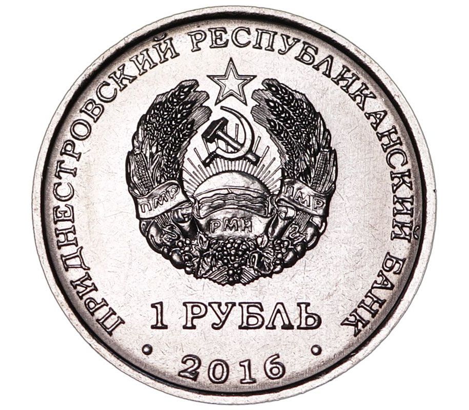 Аверс: в центре изображен государственный герб Приднестровской Молдавской Республики. Под ним указан номинал — «1 РУБЛЬ». Вдоль края монеты находятся надписи, разделенные точками: «ПРИДНЕСТРОВСКИЙ РЕСПУБЛИКАНСКИЙ БАНК», «2016».