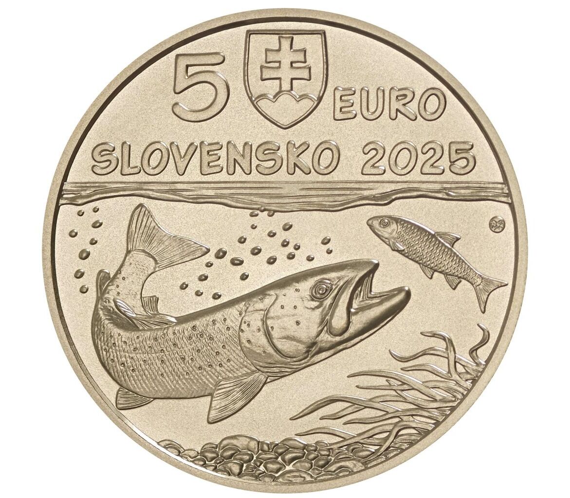 Монета 5 евро 2025 «Дунайский лосось» Словакия
