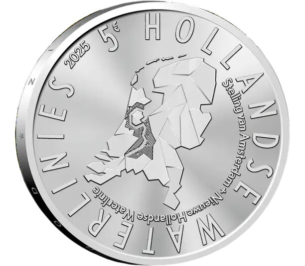 Монета 5 евро 2025 «Голландские линии водозащиты» Нидерланды (в коинкарте)