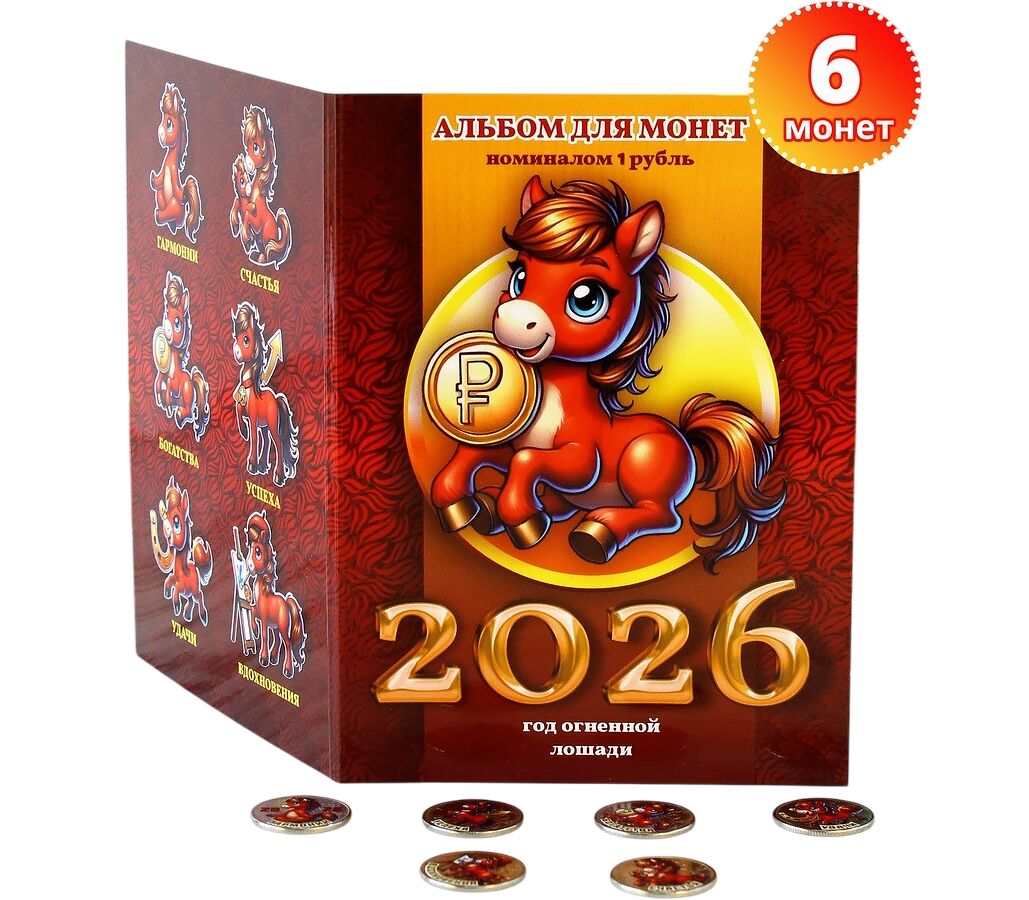 Набор монет «2026 — Год Огненной Лошади» в альбоме