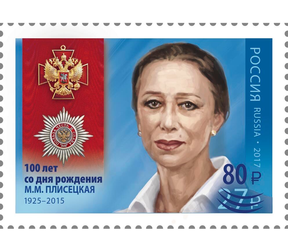 Почтовая марка «100 лет со дня рождения М.М. Плисецкой, балерины (надпечатка на марке № 2291)» 2025